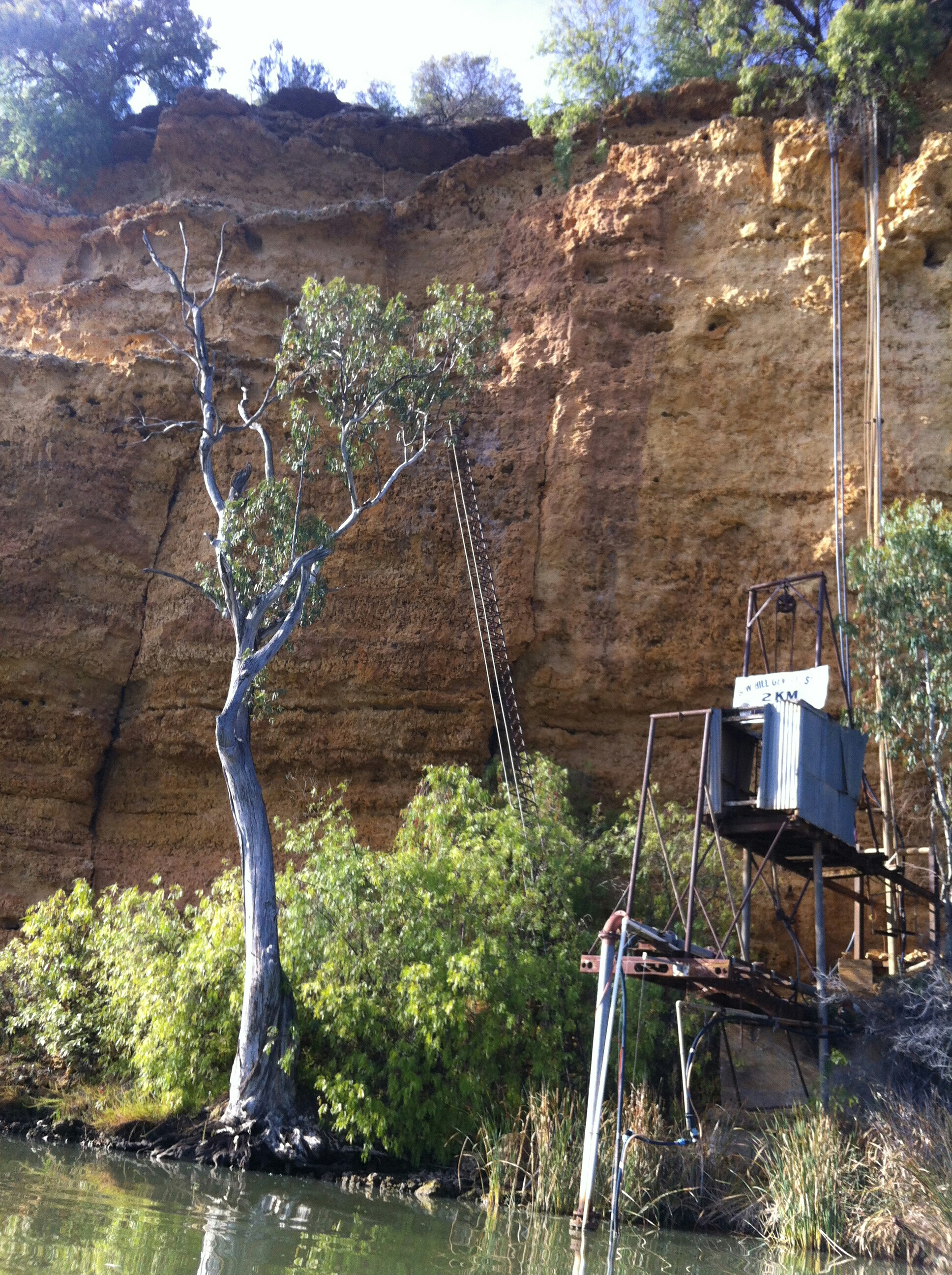 This bank is at the back of the Wellington pub.  Across the road from the pub is the caravan park.  I have no video of me getting the magnificent machine up this bank but I’m sure you can imagine.  It’s not the paddling or the snags or the dangerous cuttings that did me in but this bank came close.